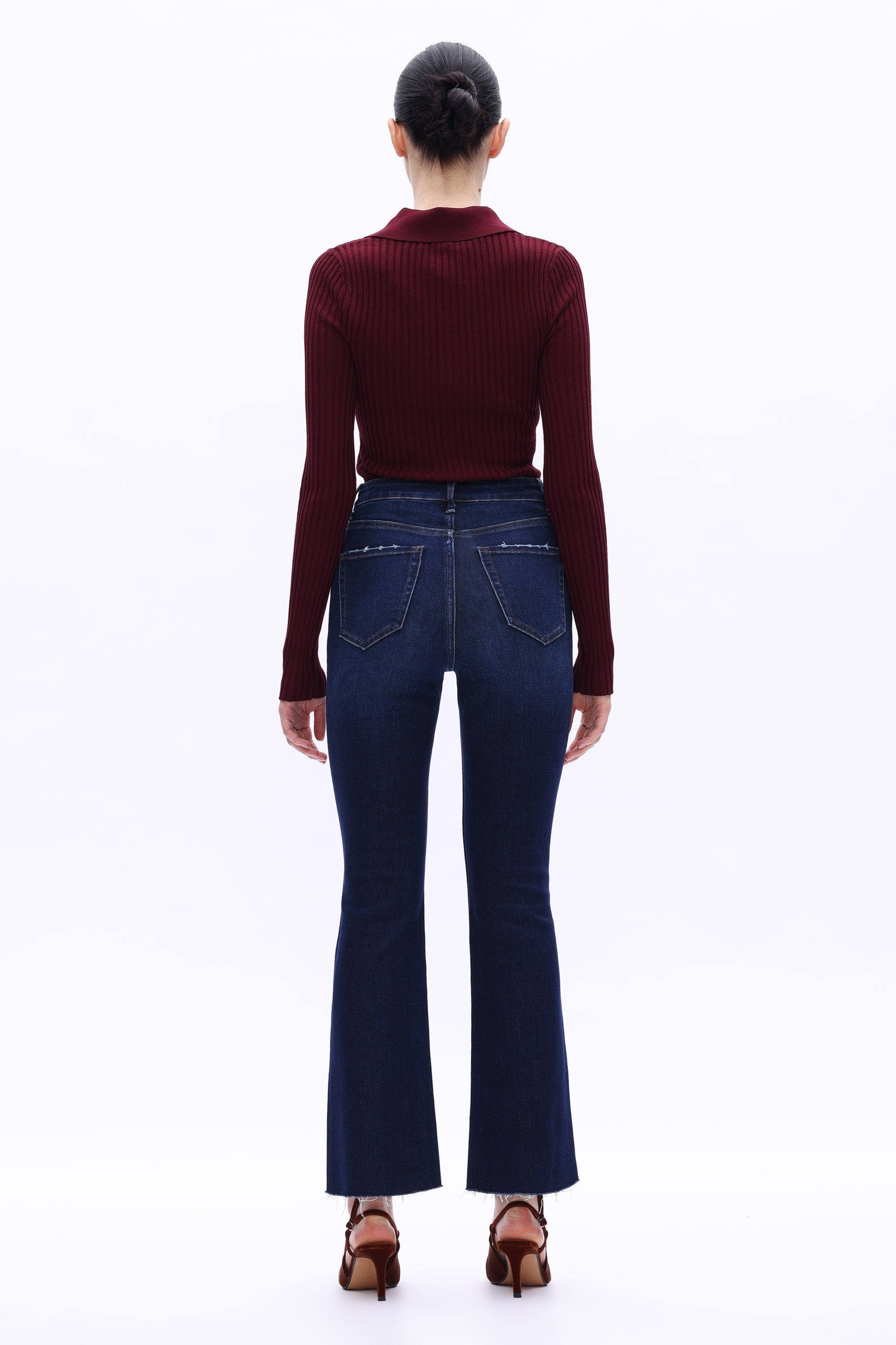 This high-rise bootcut denim jeans features a flattering high-waisted fit, on-trend bootcut silhouette, and premium high-stretch fabric that delivers all-day comfort while sculpting a sleek, stylish look.